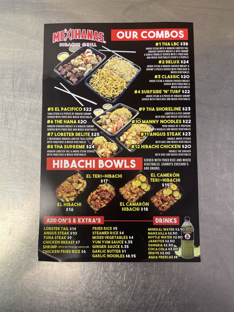 Introducing Mexihanas Hibachi Grill, a hidden gem in Long Beach offering a unique blend of Mexican and Japanese flavors. This casual dining spot provides a variety of options for both meat lovers and seafood enthusiasts. Succulent Angus steak, hibachi lobster tail, chicken breast, and shrimp combos will tantalize your taste buds. The El Hibachi Bowl with chicken breast and fried rice is a must-try for a satisfying meal. The menu also features add-ons like lobster tail and tuna steak for those seeking indulgence. Customers rave about the fresh, made-to-order food and impeccable customer service. Mexihanas Hibachi Grill is a perfect choice for a quick bite or a fulfilling meal with flavors that will leave you craving for more.